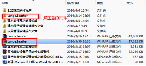 、从官网下载的压缩包文件名为:Lange.Leather,将压缩包解压到当前文件夹,如下图